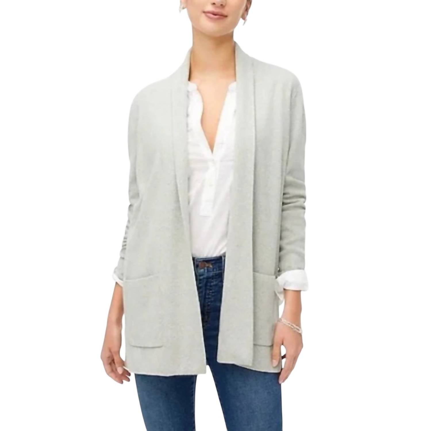 Feito sob medida para a perfeição, este blazer será sua jaqueta favorita por muitos anos. O Blazer Chelsea Sweater da J.Crew é uma peça sofisticada para usar em camadas, em um versátil tom cinza. Confeccionado em 100% algodão, este blazer de modelagem regular apresenta mangas longas e abertura frontal para facilitar o uso. Seu comprimento vai abaixo do quadril, oferecendo ampla cobertura e estilo. Fabricado no Camboja, este blazer cinza sólido também possui bolsos e pode ser lavado na máquina, seguindo as instruções de cuidados na secadora.