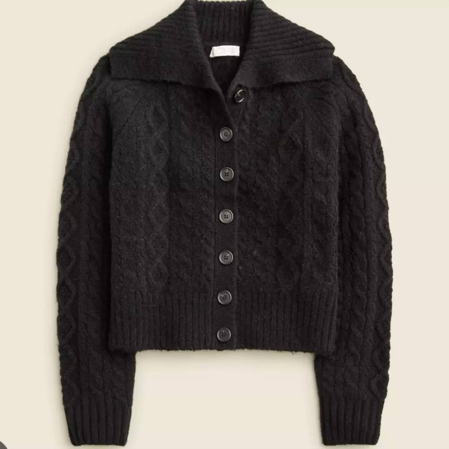 Use este adorável cardigan sobre qualquer camisola ou regata. Envolva-se em elegância atemporal com o Cardigan J.Crew de gola alta em tricô trançado, uma peça essencial preta de manga comprida que combina aconchego e estilo. Fabricada no Camboja, esta peça luxuosa apresenta uma mistura de 44% acrílico, 24% lã merino, 17% poliamida, 12% alpaca e 3% elastano, confeccionada em um padrão texturizado em tricô trançado. Com silhueta ajustada, o cardigan atinge o quadril e mede 52 cm de comprimento. Fechamento: Botão. Cuidados: Somente lavagem a seco.
