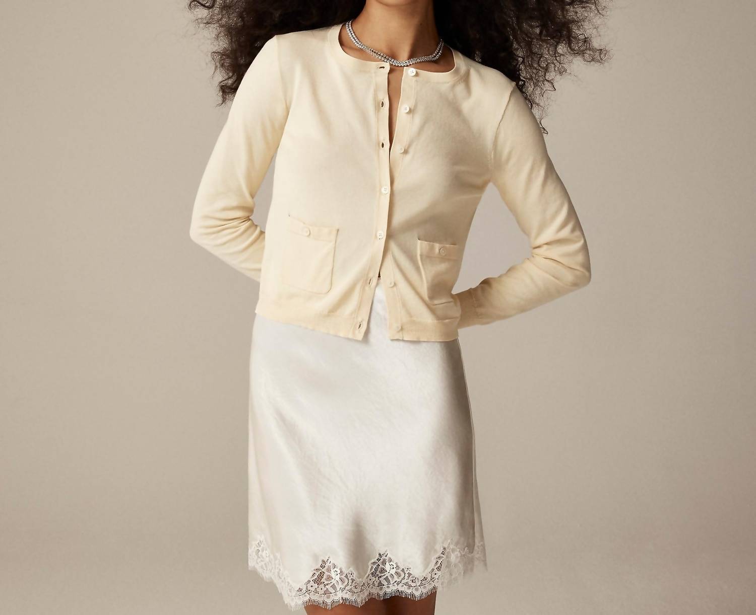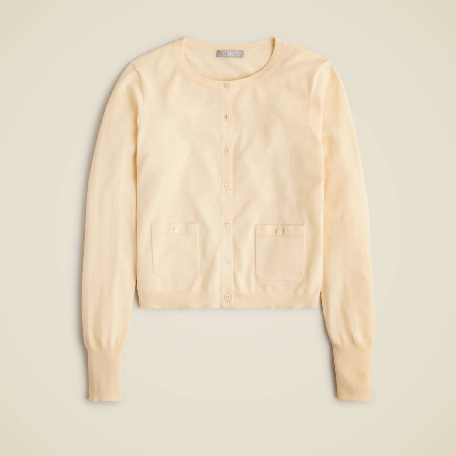 Um ajuste clássico que funciona tão bem abotoado quanto aberto. Explore o luxuoso Cardigan Crewneck da J.Crew, elegantemente confeccionado em algodão egípcio 100% ultrafino para maciez e durabilidade incomparáveis. Este cardigan cru apresenta um design clássico de manga comprida com corte cropped, medindo 48 cm de comprimento e 78 cm de comprimento de manga. Fabricado na China, possui fecho de botão e bolsos práticos, tornando-o funcional e estiloso. As instruções de cuidado recomendam lavar à mão e secar na horizontal, garantindo durabilidade e conforto.