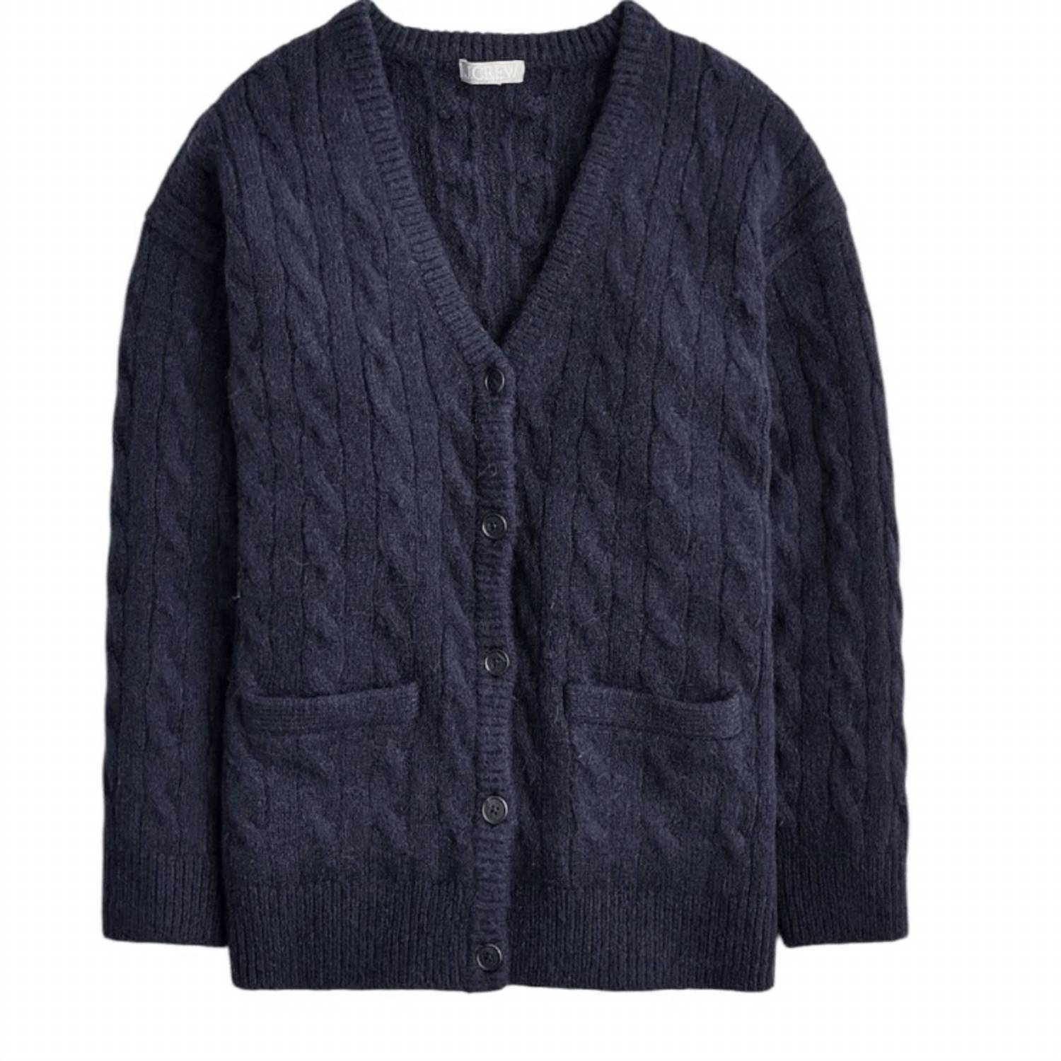 Use este adorável cardigan sobre qualquer camisola ou regata. Revele uma elegância atemporal com o Cardigan Relaxed Cable Knit da J.Crew, uma obra-prima azul-marinho que personifica o charme da herança. Confeccionado em uma mistura aconchegante de 44% acrílico, 24% lã merino, 17% poliamida, 12% alpaca e 3% elastano, este cardigan de manga comprida promete aconchego e conforto. Com fecho de botão, apresenta detalhes texturizados em tricô trançado, decote em V e um corte oversized projetado para atingir o meio da coxa, com 71 cm de comprimento. Originário do Camboja, os cuidados incluem lavagem à mão e secagem em superfície plana.