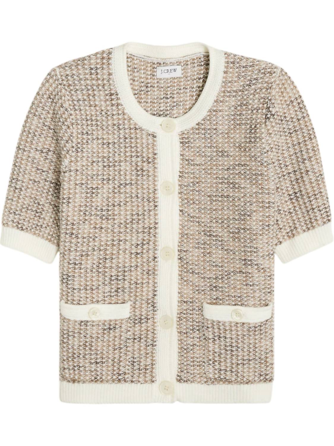 Use este adorável cardigan sobre qualquer camisola ou regata. Sofisticado tom Ivory Heather. Confeccionado em algodão premium. Combina o conforto leve que você deseja. Textura macia e respirável. Gola redonda estilosa e estampa texturizada sutil. Possui fecho de botão prático e bolsos práticos. Funcional e chique sem esforço. Incorpora estilo atemporal e qualidade duradoura.