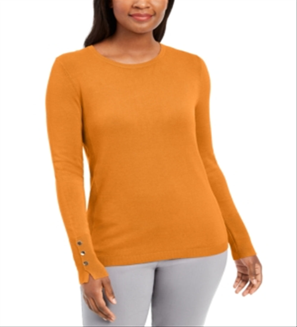 macio e elegante com gola redonda clássica e malha sólida | o suéter de manga comprida atemporal da coleção jm é finalizado com botões decorativos metálicos chiques nos punhos