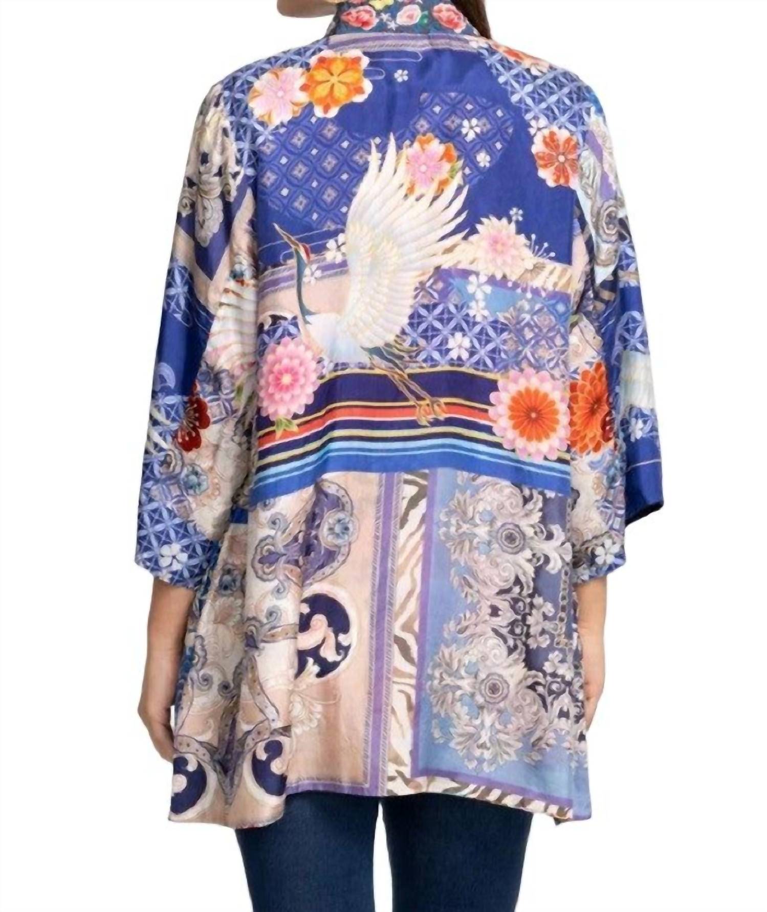 Use este adorável cardigan sobre qualquer camisola ou regata. O quimono detalhado inclui bolsos nas costuras e fecho frontal com botão de pressão, permanecendo totalmente reversível. 100% seda. Medidas para o tamanho M: Busto - 114 cm, Comprimento - 81 cm. Instruções de cuidado: Vire do avesso e lave à mão com cuidado. Deixe secar na horizontal. Passe a ferro com vapor suave, se necessário.