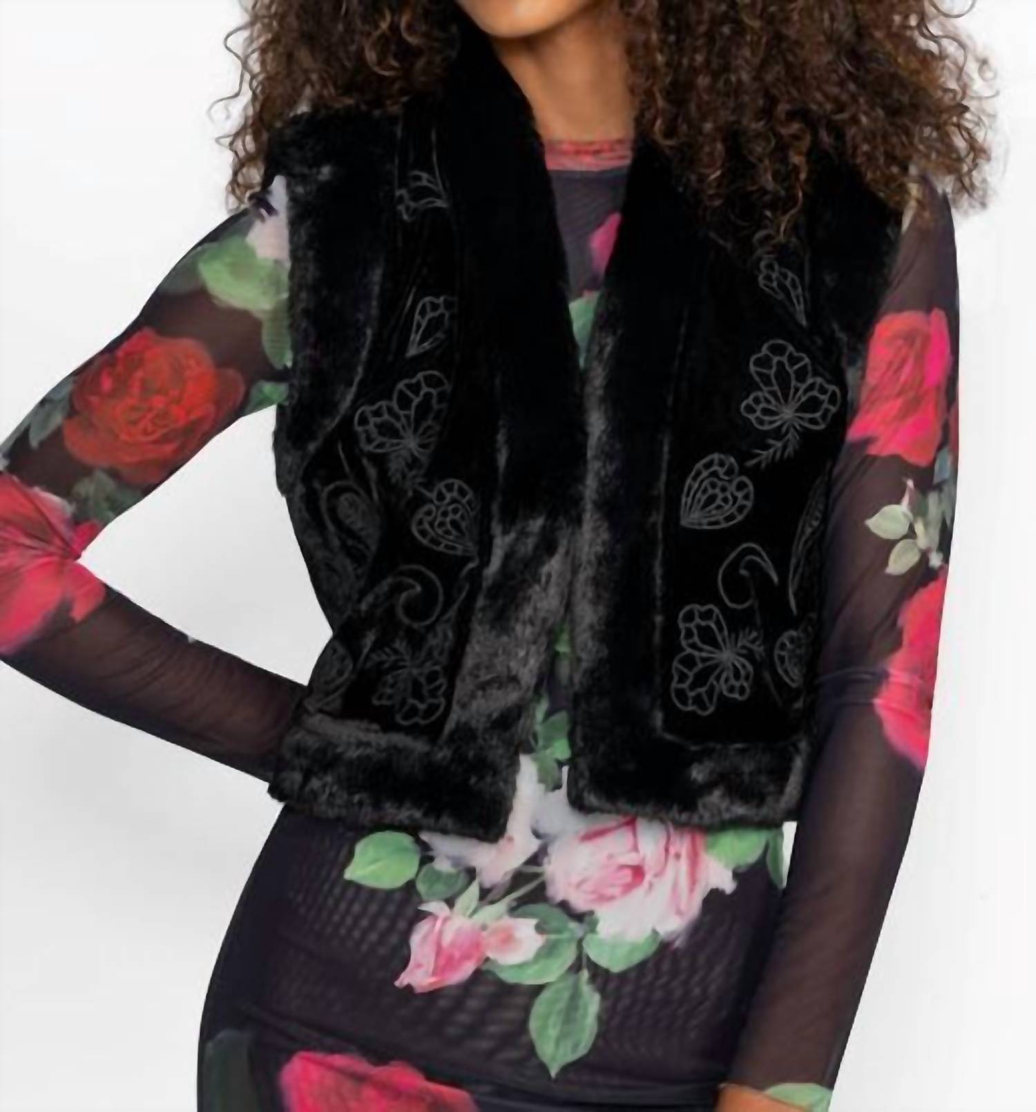 Aquela peça extra que você não sabia que precisava! O Colete Rachella é cuidadosamente confeccionado em uma mistura única de seda, adicionando textura e interesse visual ao seu look. Apresenta detalhes bordados intrincados tom sobre tom e acabamento com um acabamento de pele aconchegante. O colete fecha na frente com um fecho tradicional de colchete. Use-o sobre uma blusa de gola alta para um look casual sofisticado e combine-o com jeans despojado. 80% Viscose 10% Seda 10% Nylon