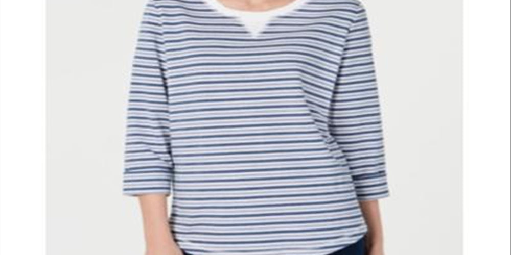O estilo permanece despojado com o moletom listrado da Karen Scott! Com detalhes em camadas no decote, esta peça é um verdadeiro must-have.