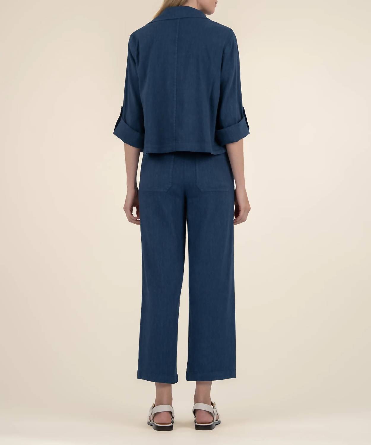 Um blazer tão versátil que você pode usá-lo no escritório ou combiná-lo com jeans para um visual mais casual. Eleve seu look casual com o Blazer Crop Nadine Linen da KUT FROM THE KLOTH em um deslumbrante tom azul-oceano. Com mangas três quartos, esta peça é confeccionada em uma mistura de 50% linho, 48% rayon e 2% elastano, proporcionando uma silhueta confortável e elegante. Seu comprimento curto mede 53 cm a partir do ponto alto do ombro e foi projetado para um ajuste contemporâneo. O blazer fecha com um botão e é ideal para viagens ou trabalho na primavera. A modelo tem 1,78 m e veste tamanho P (81 cm de busto, 61 cm de cintura e 94 cm de quadril).