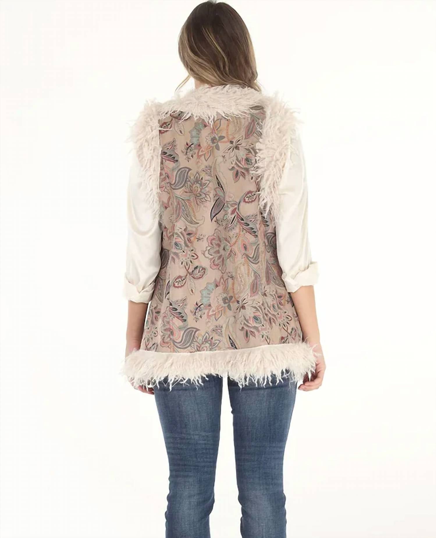 Paparazzi By Biz - Colete longo de camurça sintética e pele de carneiro sintética com estampa floral empoeirada