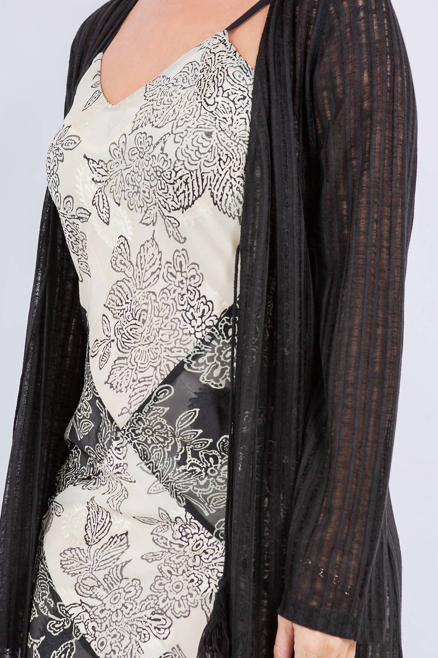 Eleve seu guarda-roupa com o Cardigan Longo com Amarração Frontal Needle Out Knit da PAPARAZZI, uma peça contemporânea em preto elegante. Este cardigan de manga comprida apresenta amarração frontal com acabamento em borlas e bainha reta, proporcionando uma silhueta elegante. Feito em 100% poliéster, ele foi projetado para ser fiel ao tamanho. Cuidados: Lavar à mão com água fria, não usar alvejante e secar na horizontal, garantindo que mantenha seu formato elegante.