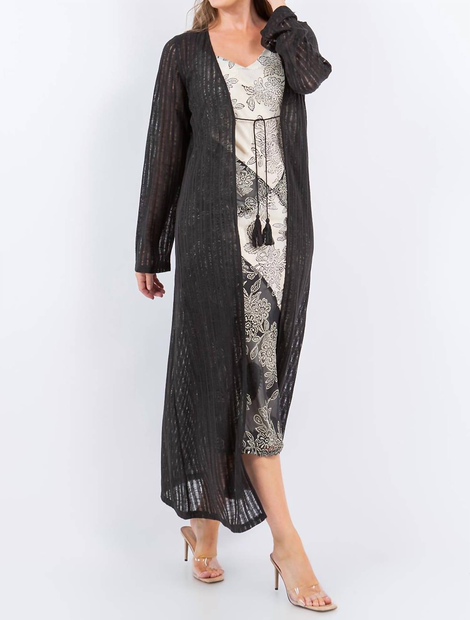 Este cardigan será um favorito para usar em rodízio de suéteres. Eleve seu guarda-roupa com o Cardigan Longo com Amarração Frontal Needle Out Knit da PAPARAZZI, uma peça contemporânea em preto elegante. Este cardigan de manga comprida apresenta amarração frontal com acabamento em borlas e bainha reta, proporcionando uma silhueta elegante. Feito em 100% poliéster, ele foi projetado para ser fiel ao tamanho. Cuidados: Lavar à mão com água fria, não usar alvejante e secar na horizontal, garantindo que mantenha seu formato elegante.