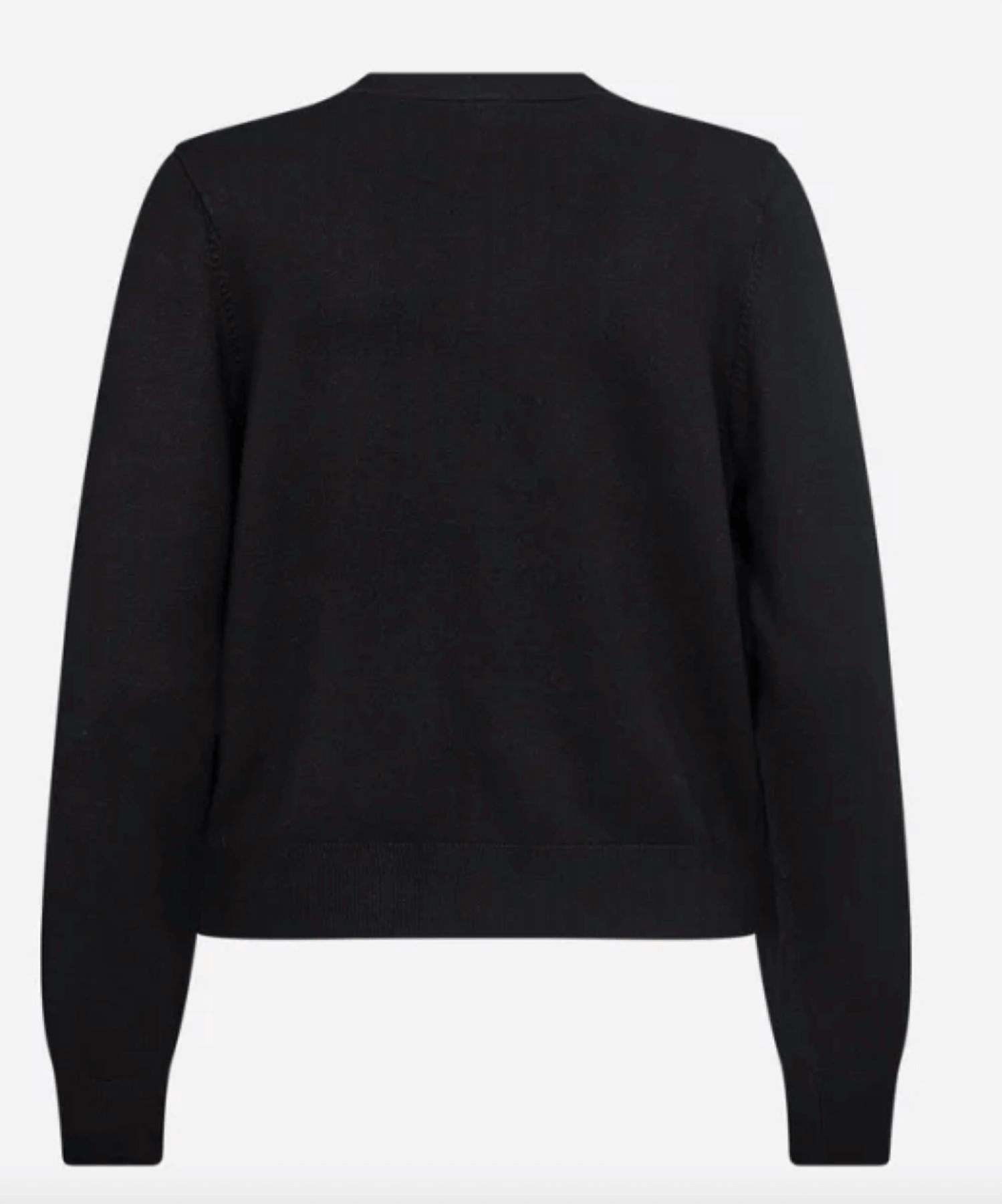 Peça sofisticada confeccionada em um elegante tom preto. Apresenta decote em V atemporal e mangas longas, com modelagem regular. Composto por 75% Viscose e 25% Nylon. Fechamento por botão. Lavagem à mão.