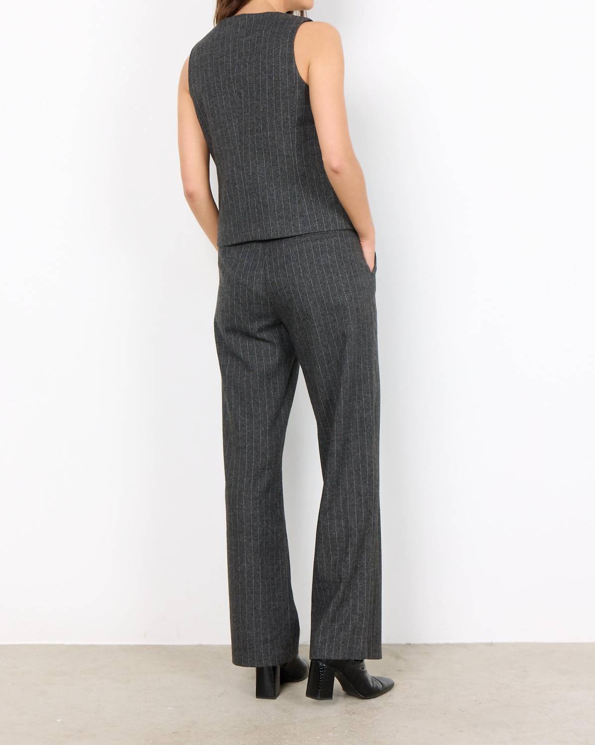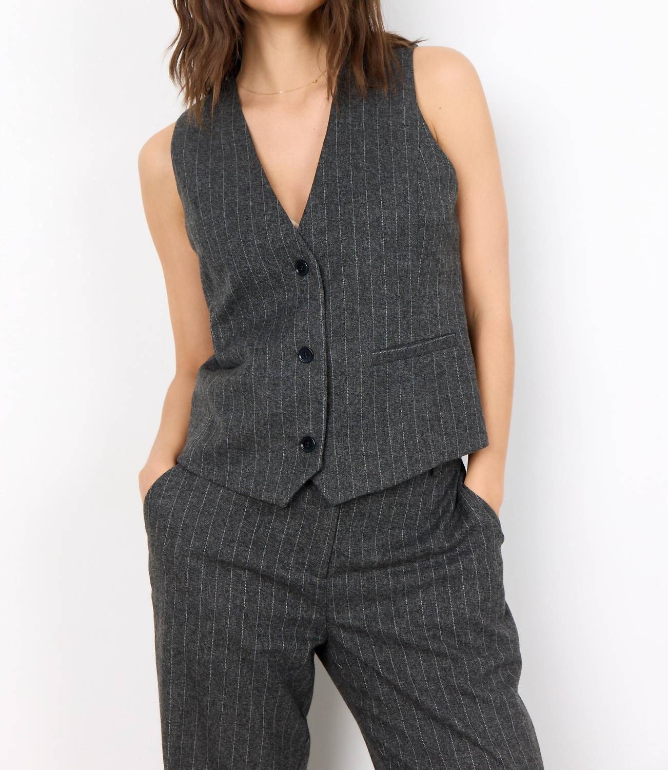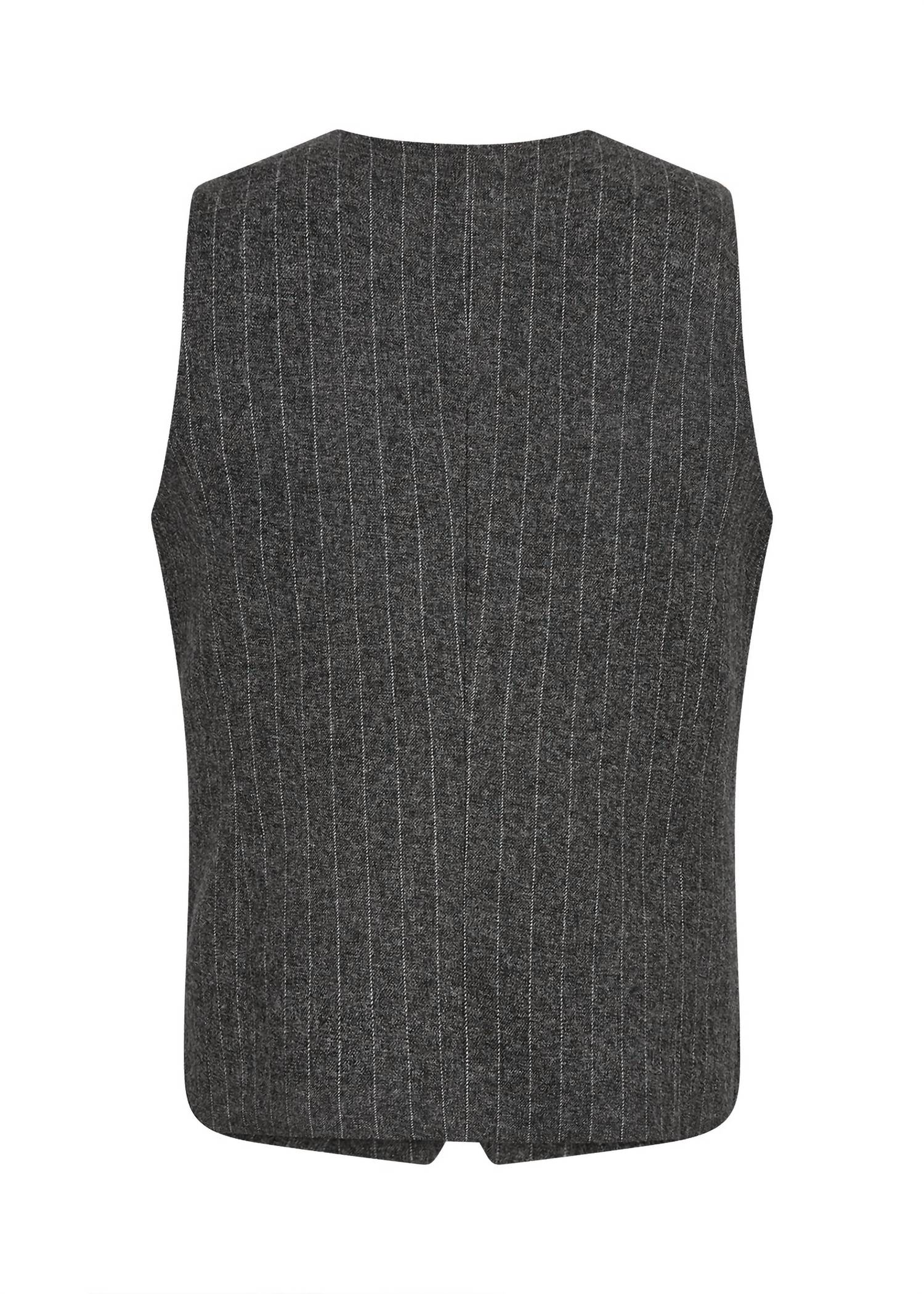 Use este colete sobre uma roupa toda preta para um visual perfeitamente elegante. Apresentamos o Colete Victoria, uma peça sofisticada, habilmente confeccionada com uma mistura de 68% poliéster, 30% viscose e 2% elastano. Este colete sem mangas, com riscas finas, apresenta um decote em V elegante e fecho de botão, oferecendo um ajuste sob medida e um visual texturizado clássico. Ideal para adicionar um toque de elegância moderna a qualquer look, combina perfeitamente com calças combinando e calçados de sua escolha para um conjunto chique. Cuidados: Lavar à mão com água fria e secar no varal.