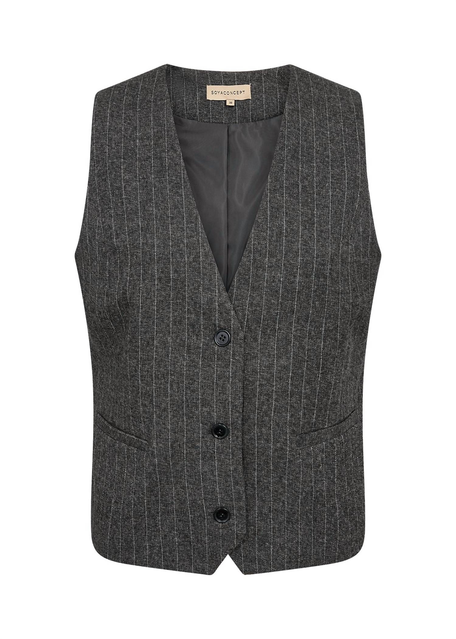Apresentamos o Colete Victoria, uma peça sofisticada, habilmente confeccionada com uma mistura de 68% poliéster, 30% viscose e 2% elastano. Este colete sem mangas, com riscas finas, apresenta um decote em V elegante e fecho de botão, oferecendo um ajuste sob medida e um visual texturizado clássico. Ideal para adicionar um toque de elegância moderna a qualquer look, combina perfeitamente com calças combinando e calçados de sua escolha para um conjunto chique. Cuidados: Lavar à mão com água fria e secar no varal.