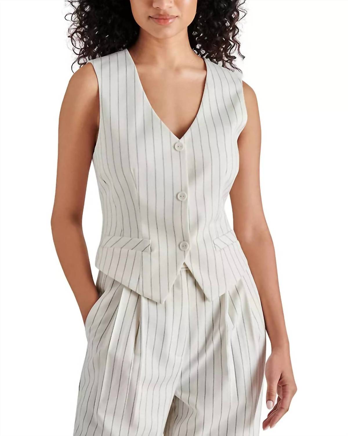 Use este colete sobre uma roupa toda preta para um visual perfeitamente elegante.