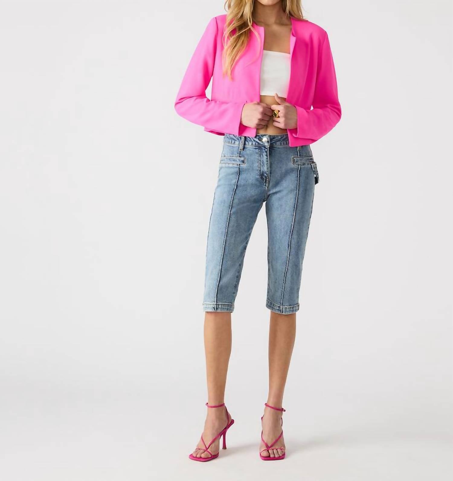 Um blazer tão versátil que você pode usá-lo no escritório ou combiná-lo com jeans para um visual mais casual. Eleve seu guarda-roupa com o Blazer Cropped Serenea da Steve Madden, uma peça rosa-choque perfeita para qualquer ocasião. Confeccionado com mangas compridas e design frontal aberto, este blazer possui bolsos frontais com aba para maior funcionalidade. Composição: 100% poliéster. Cuidados: Lavar à mão.