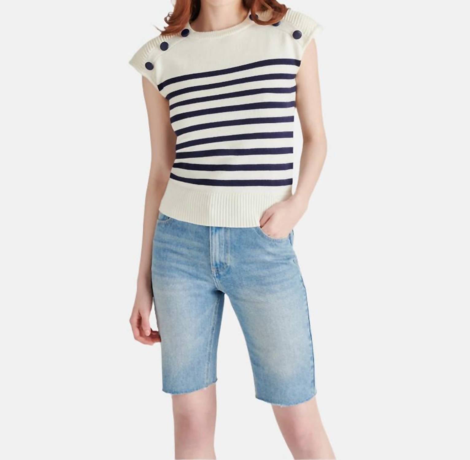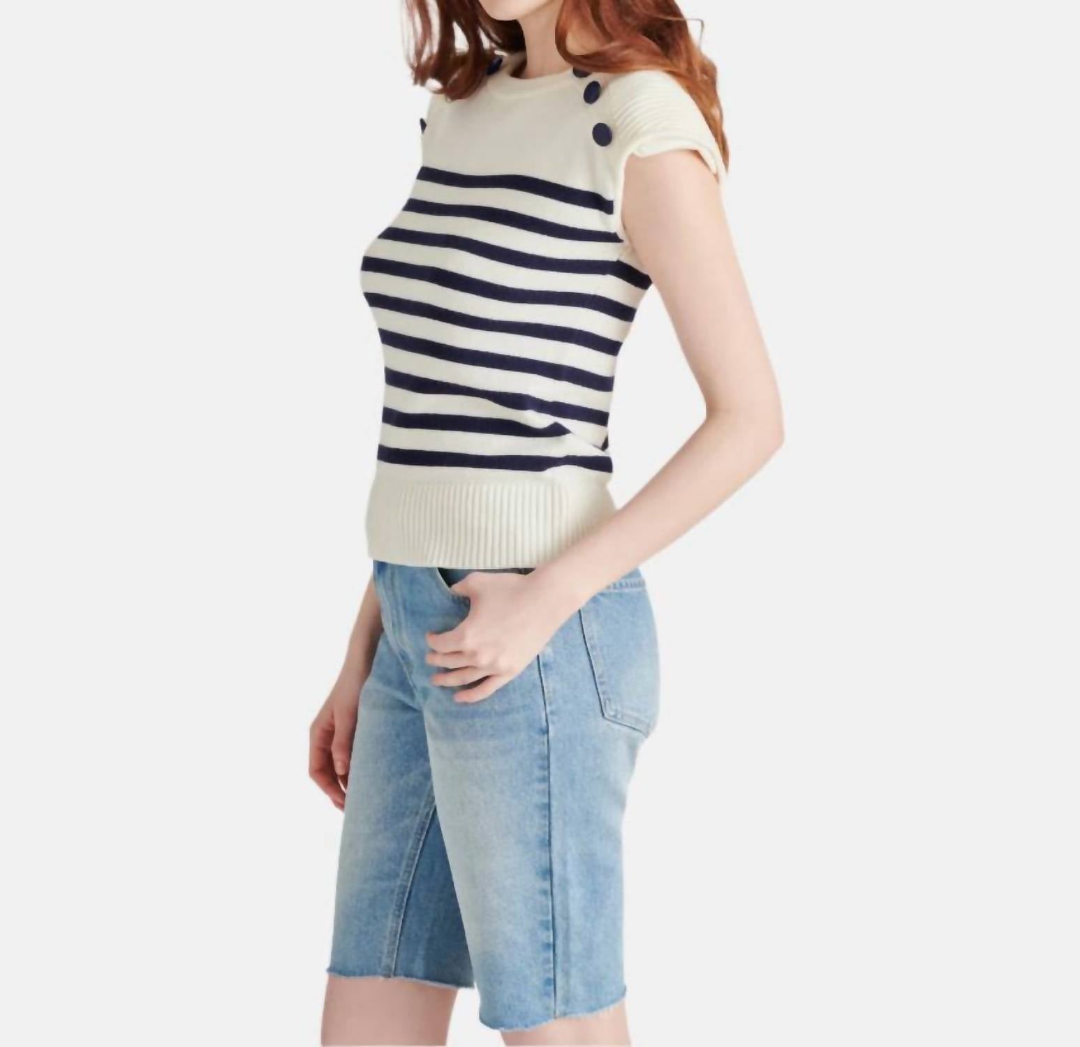 Este cardigan será um favorito para usar em rodízio de suéteres. O suéter Tomas da Steve Madden é um cardigã chique para mulheres, com um sofisticado padrão de listras na cor marfim. Confeccionado em rayon, este suéter tem mangas curtas e gola redonda clássica. Possui um estilo pull-on e é fácil de cuidar, com instruções de lavagem e secagem na máquina. Perfeito para adicionar um toque de elegância a qualquer look.