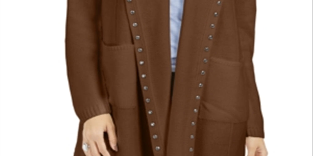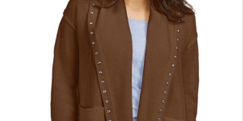 Cardigan feminino com capuz e tachas Style & Co, marrom, tamanho pequeno G