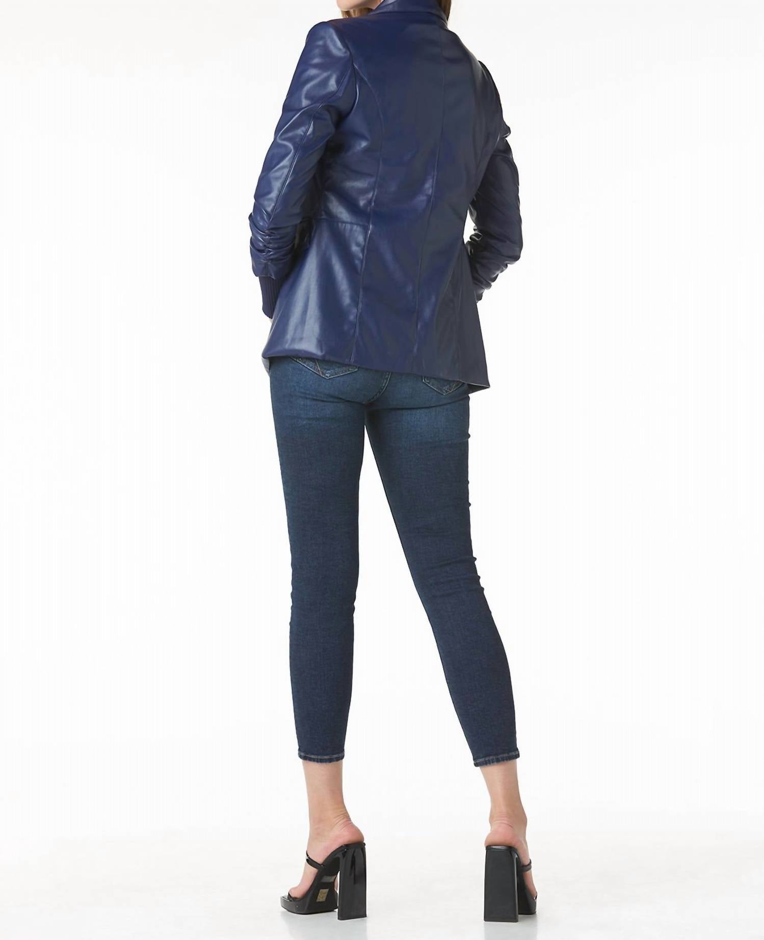 Uma versão elevada do seu blazer clássico favorito. Eleve seu estilo com o Blazer Vegano Kia da Tart Collections, desenhado no deslumbrante tom Deep Cobalt, tendência deste ano. Este blazer de manga comprida apresenta uma gola sofisticada e um fecho prático, confeccionado em couro sintético composto por 60% poliuretano e 40% viscose. Seu padrão liso elegante e bolsos práticos o tornam uma opção funcional e elegante. Cuide desta peça lavando-a à máquina com água fria, do avesso, e optando pela lavagem a seco, quando necessário. A modelo veste tamanho extrapequeno.