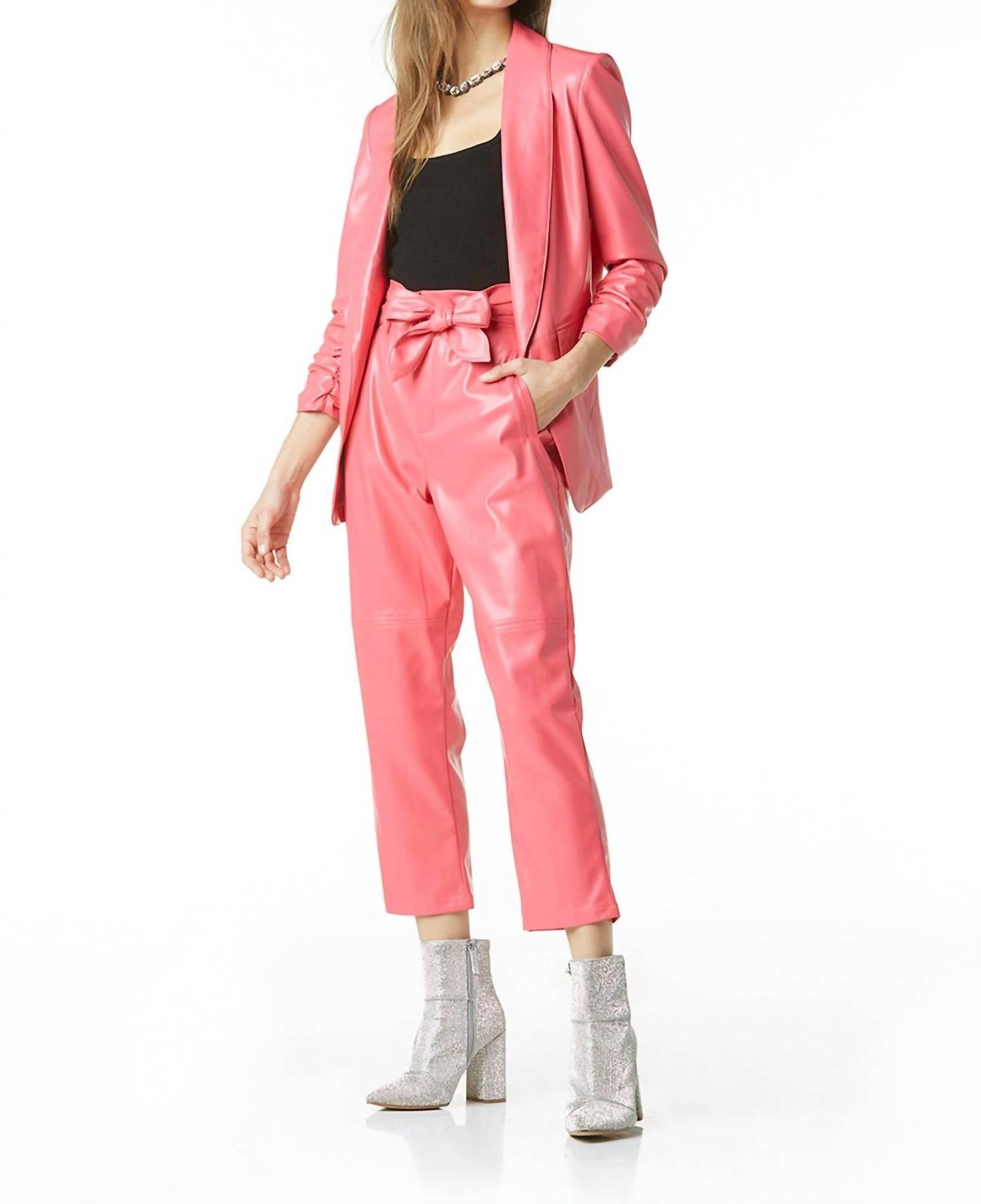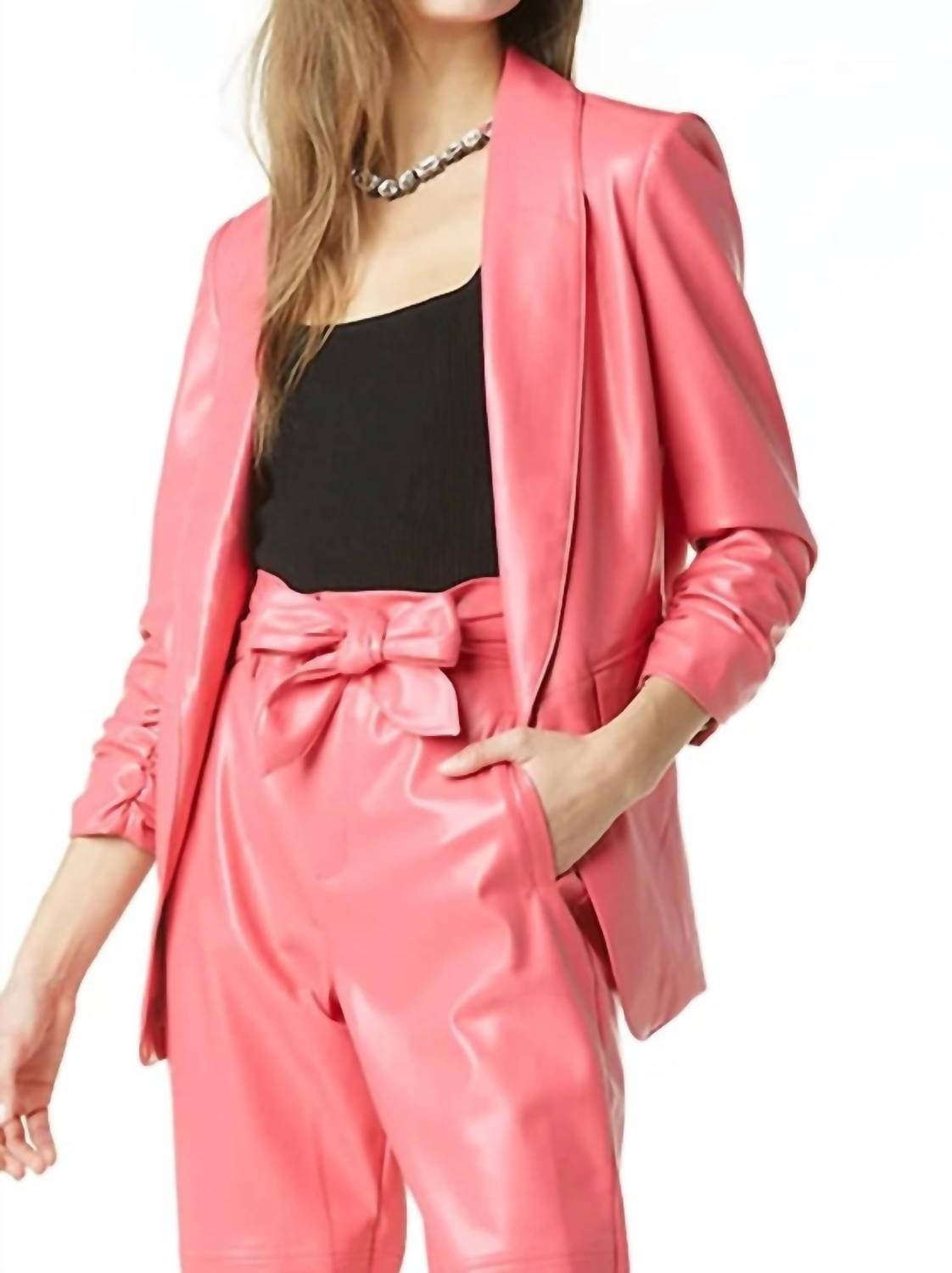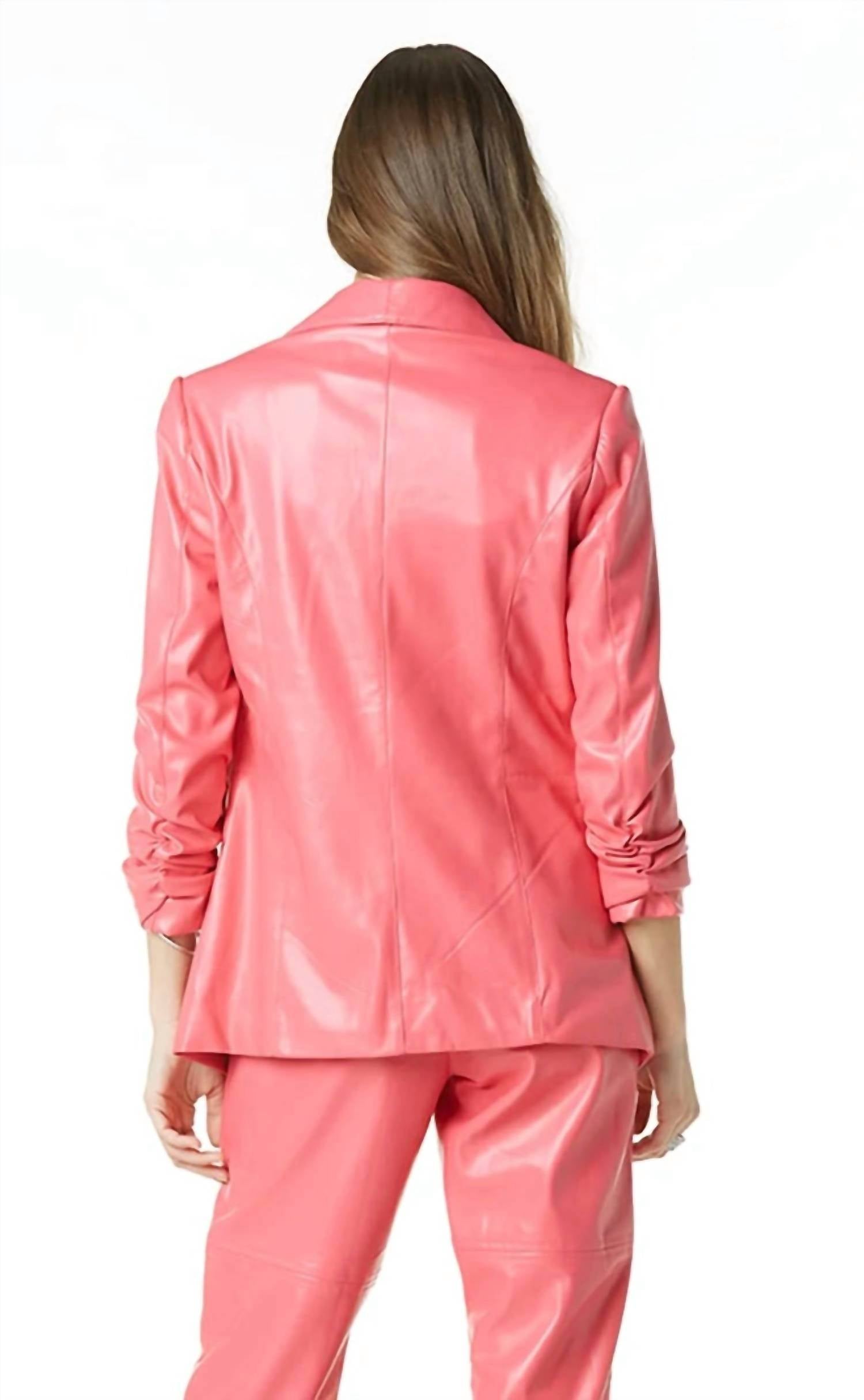 Um blazer tão versátil que você pode usá-lo no escritório ou combiná-lo com jeans para um visual mais casual. Eleve seu estilo com o Blazer Vegano Kia da Tart Collections no vibrante Rosa Azaléia, a cor de destaque do ano. Este blazer chique e sedutor apresenta mangas longas e uma gola clássica, confeccionado em uma luxuosa mistura de 60% poliuretano e 40% viscose. Fechamento: O estilo pull-on garante praticidade e conforto. Cuidados: Lavar à máquina com água fria, do avesso; não usar alvejante nem passar a ferro. A modelo veste tamanho extragrande.