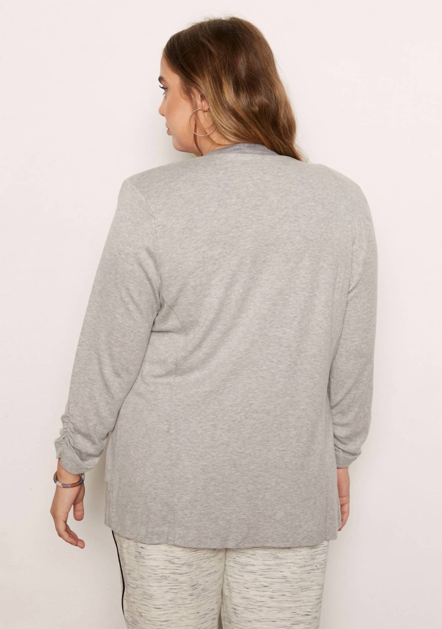 Um blazer tão versátil que você pode usá-lo no escritório ou combiná-lo com jeans para um visual mais casual. Eleve seu guarda-roupa com o Blazer Olga French Terry Plus da Tart Collections, projetado com ombreiras clássicas para maior sofisticação. Este blazer cinza mesclado, confeccionado com uma mistura de 40% Modal, 45% Rayon e 15% Elastano, possui mangas compridas e bolsos laterais práticos. A peça versátil é perfeita para qualquer ocasião e é fácil de cuidar, bastando lavar na máquina com água fria e secar na horizontal. A modelo veste tamanho 1X, mede 1,72 m, mede 112 cm de busto, 91 cm de cintura e 117 cm de quadril.