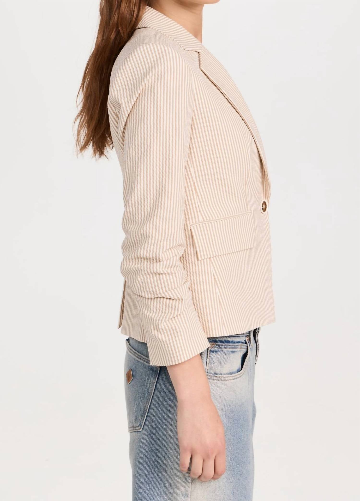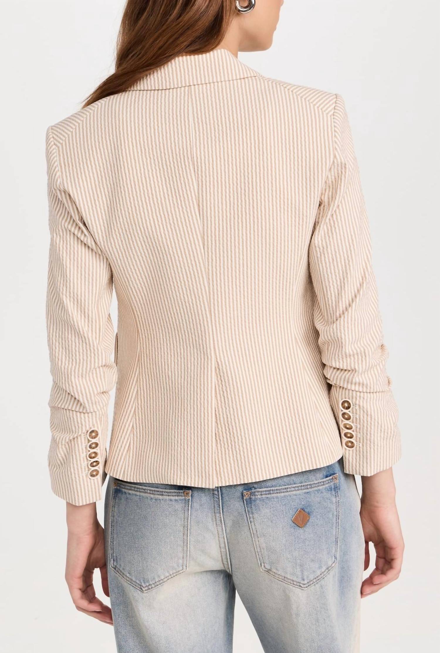 Um blazer tão versátil que você pode usá-lo no escritório ou combiná-lo com jeans para um visual mais casual. Apresentamos a Jaqueta Aaliyah Dickey, da Veronica Beard, uma peça marcante em cáqui e branco com um padrão listrado atemporal. Este blazer apresenta mangas três quartos franzidas com punhos abotoados e gola alta para um visual elegante. Confeccionada em uma mistura confortável de algodão (98% algodão, 2% elastano), possui 59 cm de comprimento e é forrada para maior aquecimento e estrutura. Fabricada nos EUA, ela vem com práticos bolsos frontais com aba e um bolso embutido no peito, protegido por um fecho de botão simples. Cuidados: Lavar somente a seco.