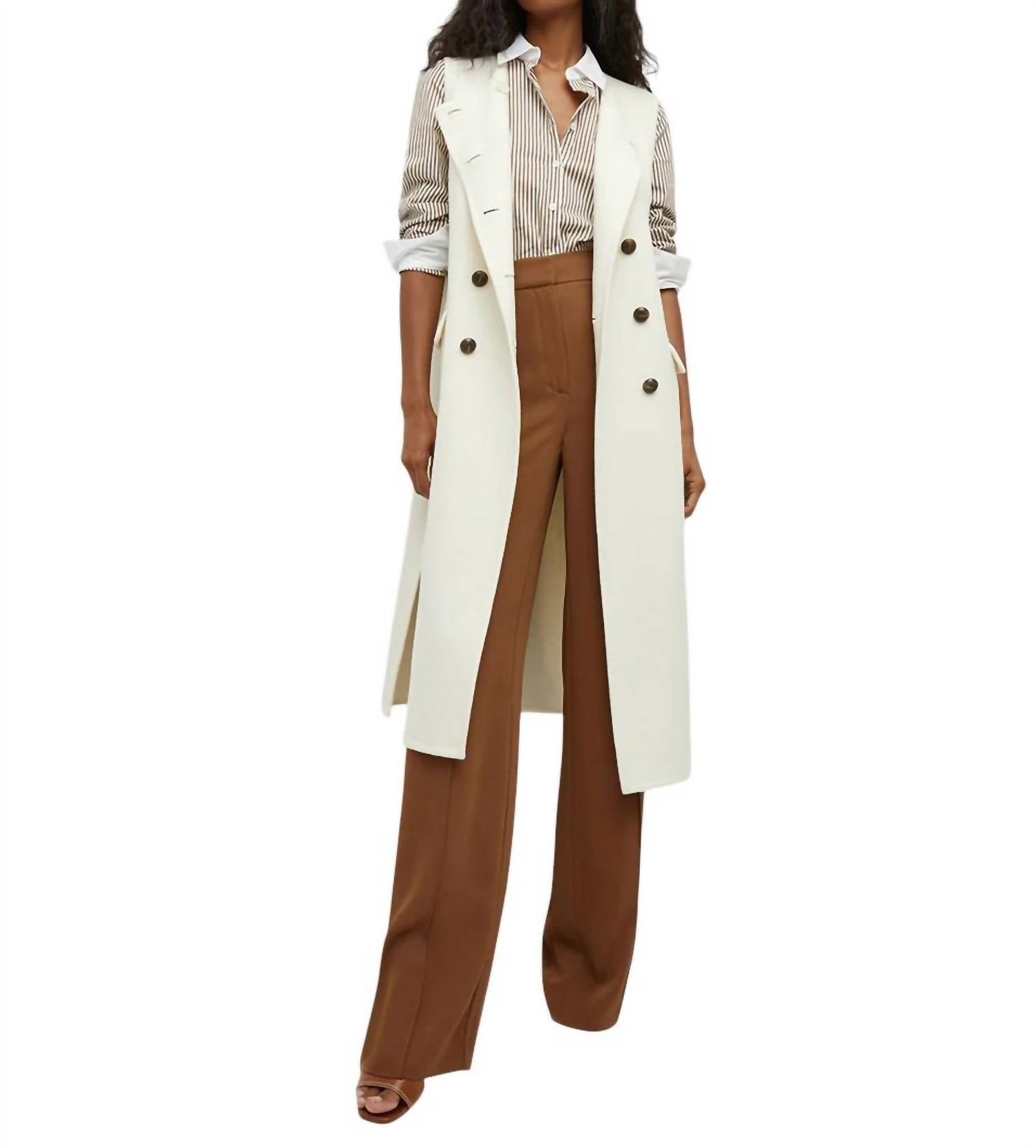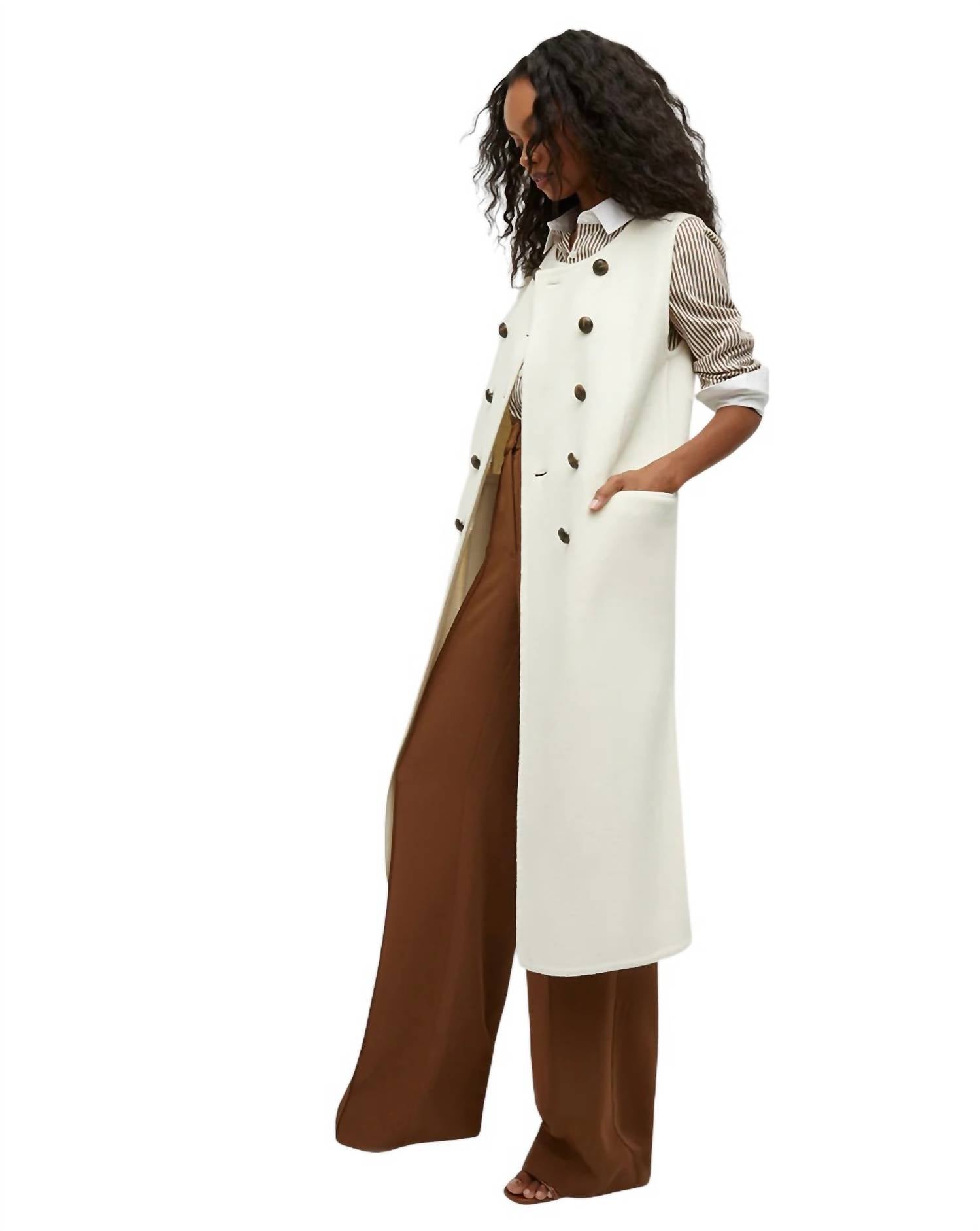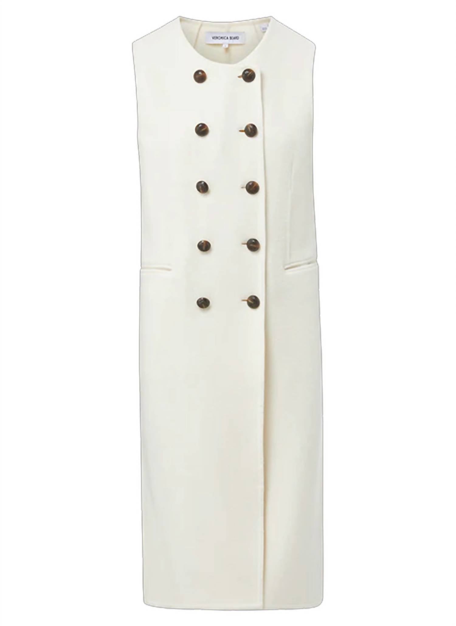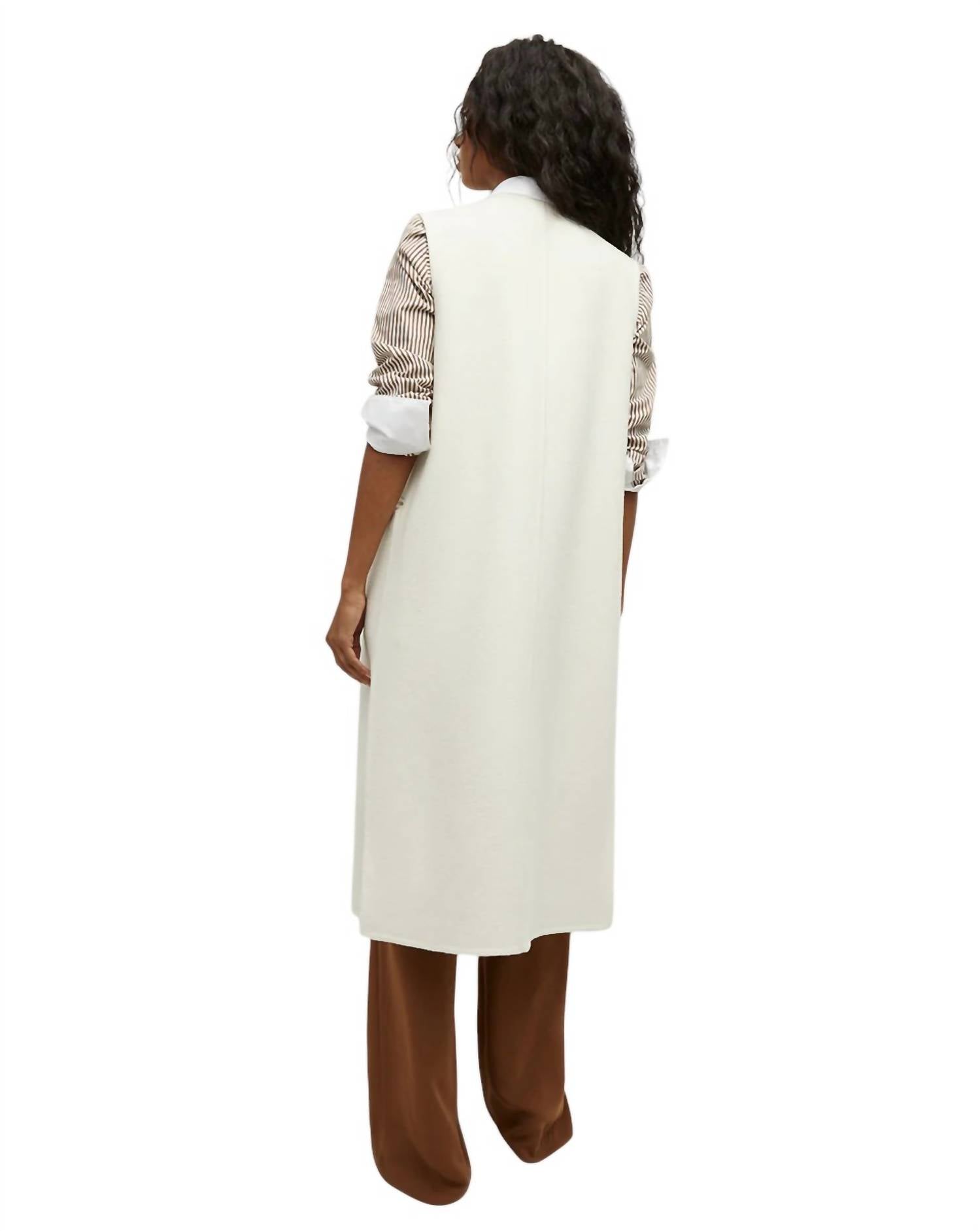 Este colete longo Hoxton é feito de uma mistura de 75% lã virgem e 25% poliamida, oferecendo aquecimento e durabilidade. Com gola redonda, bolsos práticos e fecho de botão, mede 112 cm de comprimento e pode ser lavado a seco.