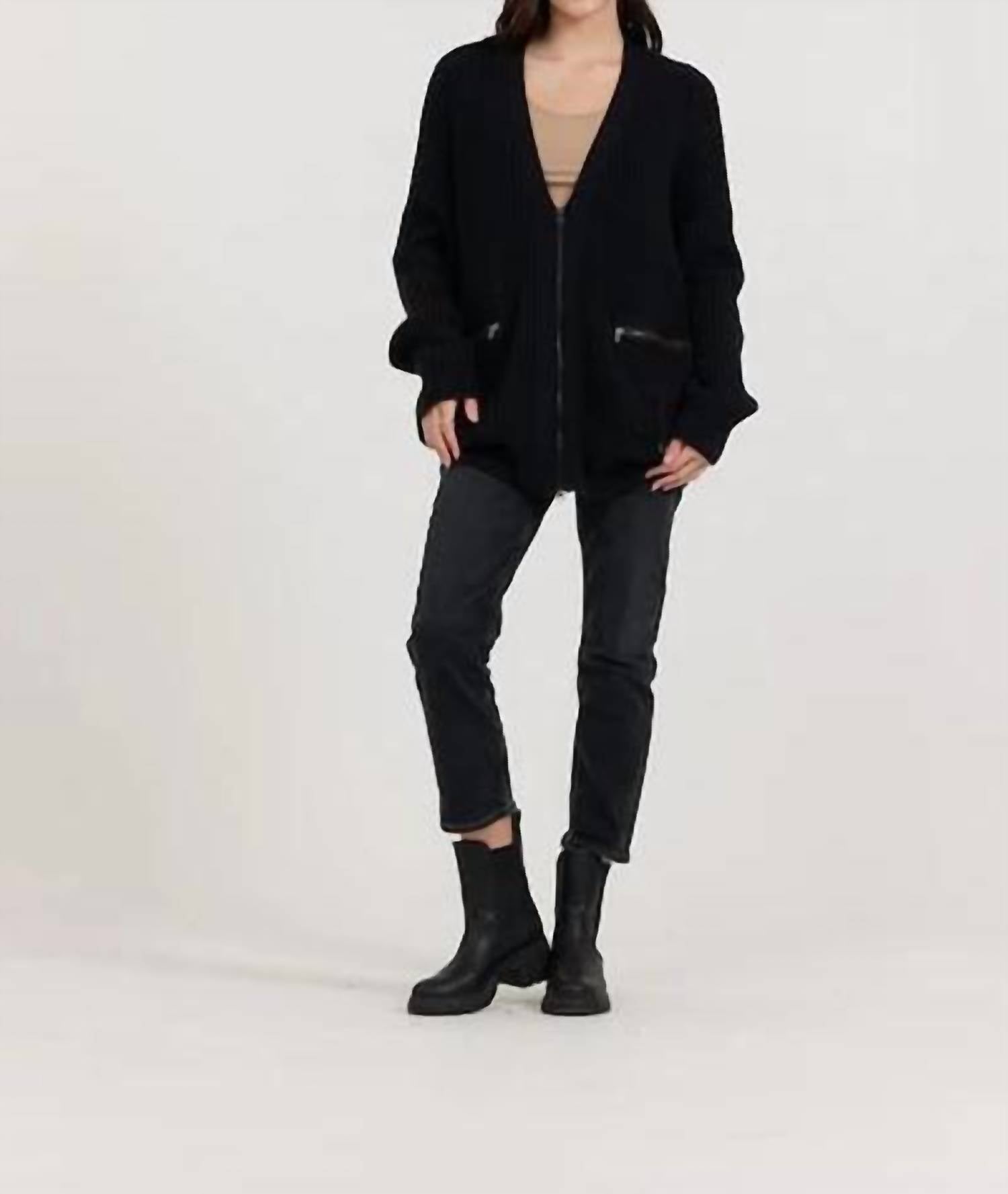 Um ajuste clássico que funciona tão bem abotoado quanto aberto. Experimente a praticidade do Cardigan Utilitário Preto Longo com Zíper Frontal da Vintage Havana, um item essencial no seu guarda-roupa de inverno. Este cardigan possui mangas compridas e fecho de zíper, combinando estilo com praticidade. Com sua estampa sólida e decote em V, ele oferece um visual elegante e contemporâneo, perfeito para usar sobre suas blusas favoritas. Feito para ser prático, esta peça também possui bolsos para maior funcionalidade.