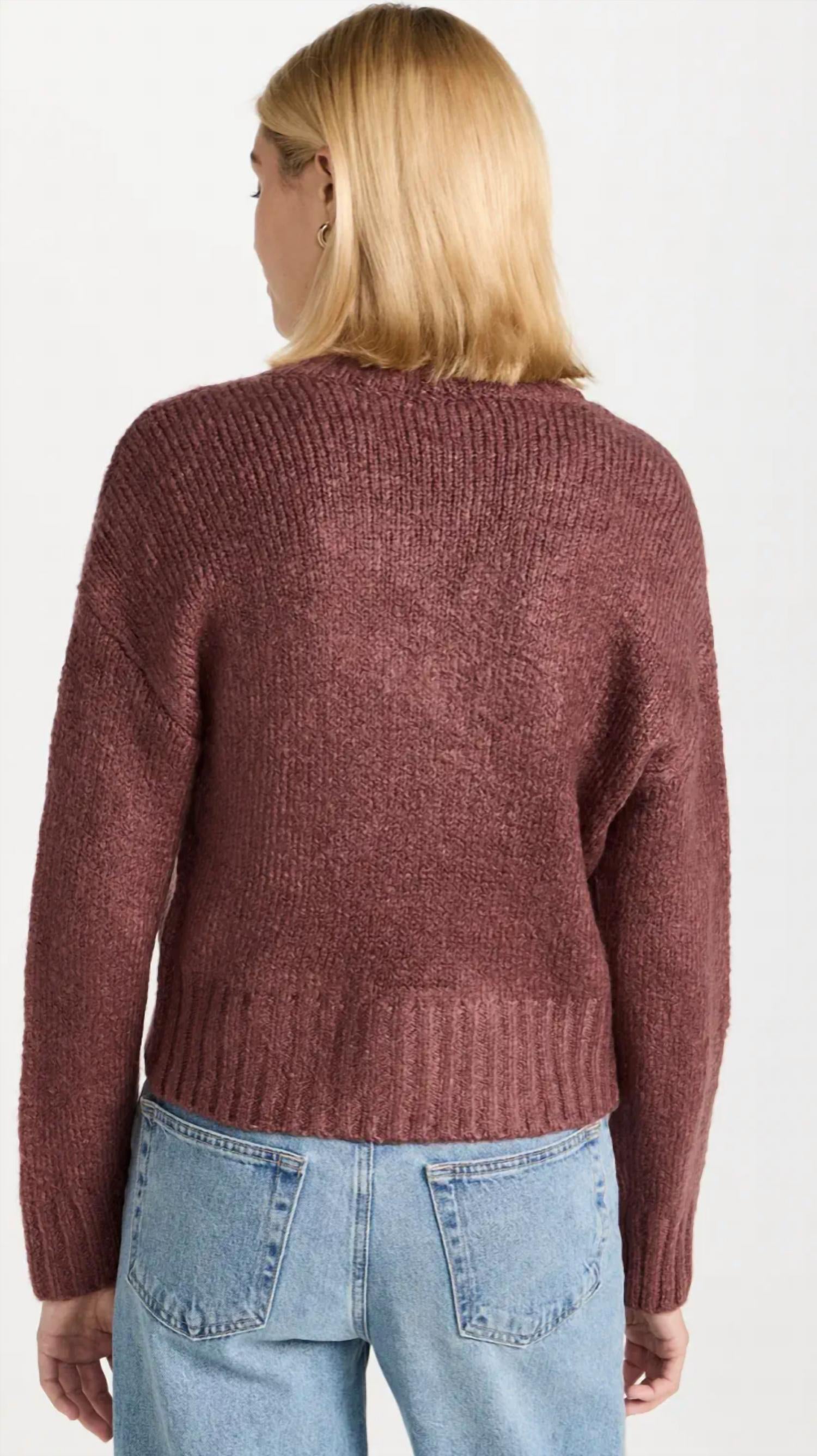 Confeccionada com mangas longas em uma mistura de 87% acrílico, 11% nylon e 2% elastano. Promete conforto e estilo. Apresenta um decote em V charmoso com fecho de botão grande. Desenhada em comprimento skinny. O tom aconchegante de amora adiciona um toque de cor.
