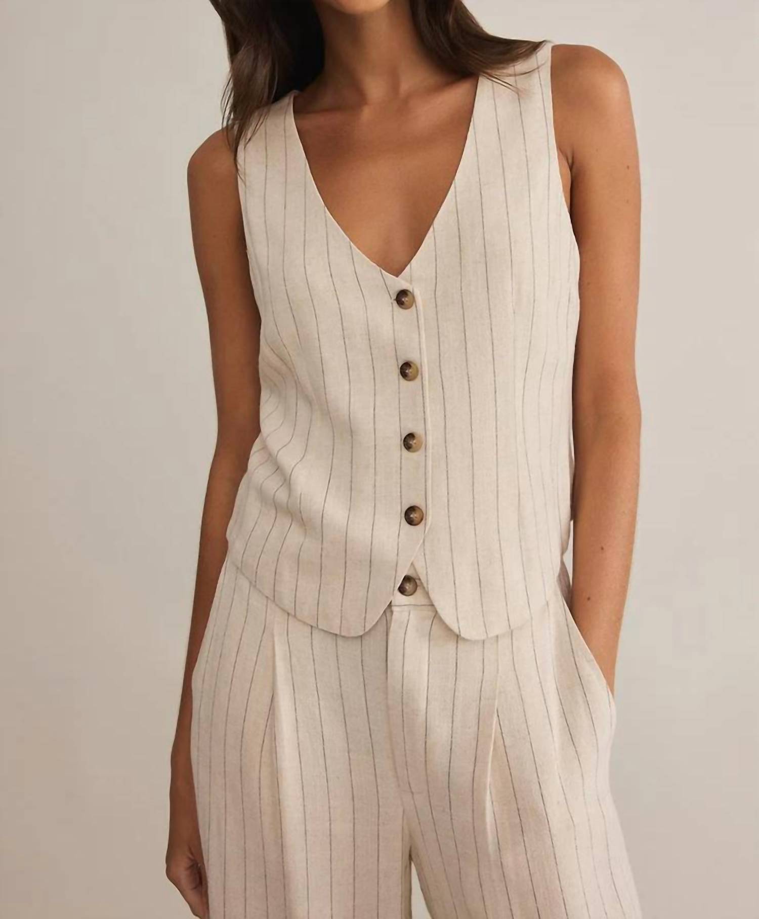 Eleve seu guarda-roupa com o Colete Belfort Pinstripe da Z Supply, uma peça deslumbrante em um tom linho atemporal. Este colete sem mangas é confeccionado em uma mistura de linho texturizado composta por 80% Viscose e 20% Linho, oferecendo uma versão moderna da alfaiataria clássica. Com decote em V e fecho de botão, tem 56 cm de comprimento, perfeito para usar em camadas ou sozinho. Lavar à máquina em ciclo frio e suave e pendurar para secar para facilitar a manutenção.