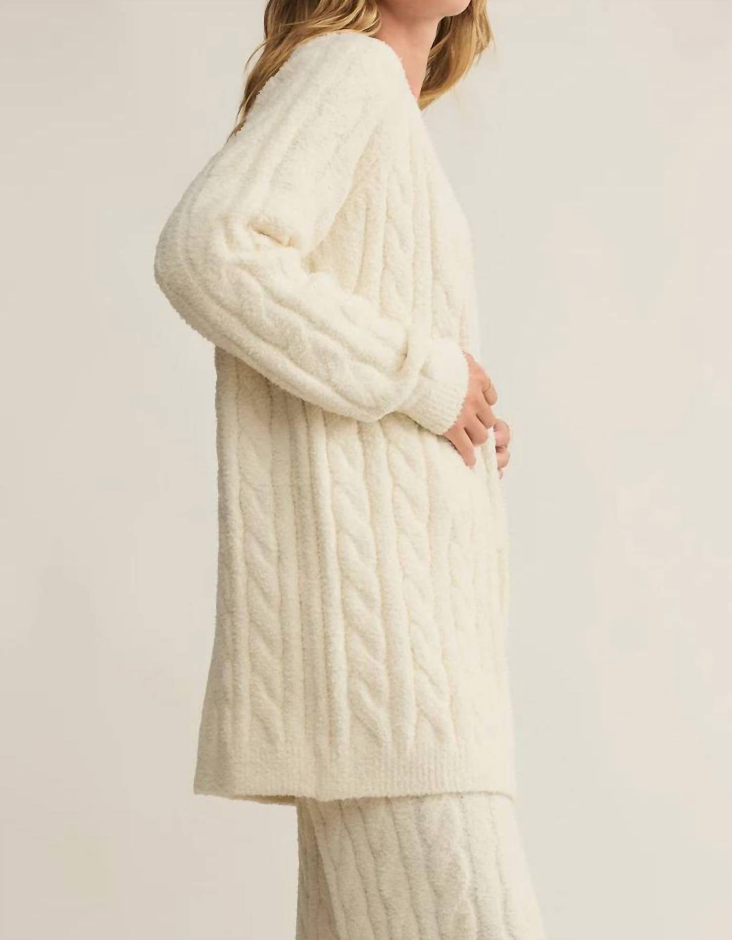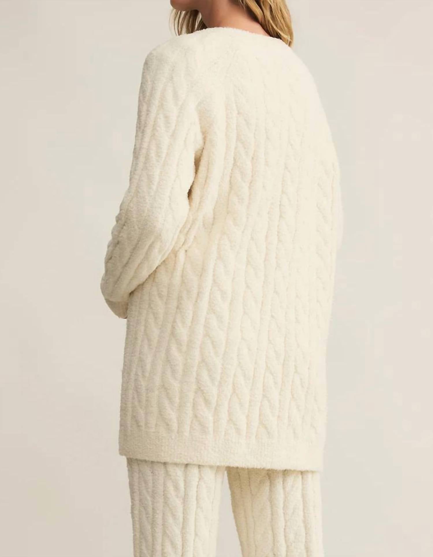 Este cardigan será um favorito para usar em rodízio de suéteres. Aconchegue-se com o aconchegante Cardigan Cate Cable Knit da Z Supply, uma mistura perfeita de aconchego e estilo. Este cardigan de manga comprida é confeccionado em fio macio Marshmallow, composto por 100% poliéster, e apresenta uma charmosa textura de malha trançada. Projetado para ser fácil de usar em camadas, oferece um caimento regular com um fecho confortável e uma gola redonda clássica. O cuidado é simples: lave na máquina e seque na horizontal, tornando-o uma adição fácil ao seu guarda-roupa.