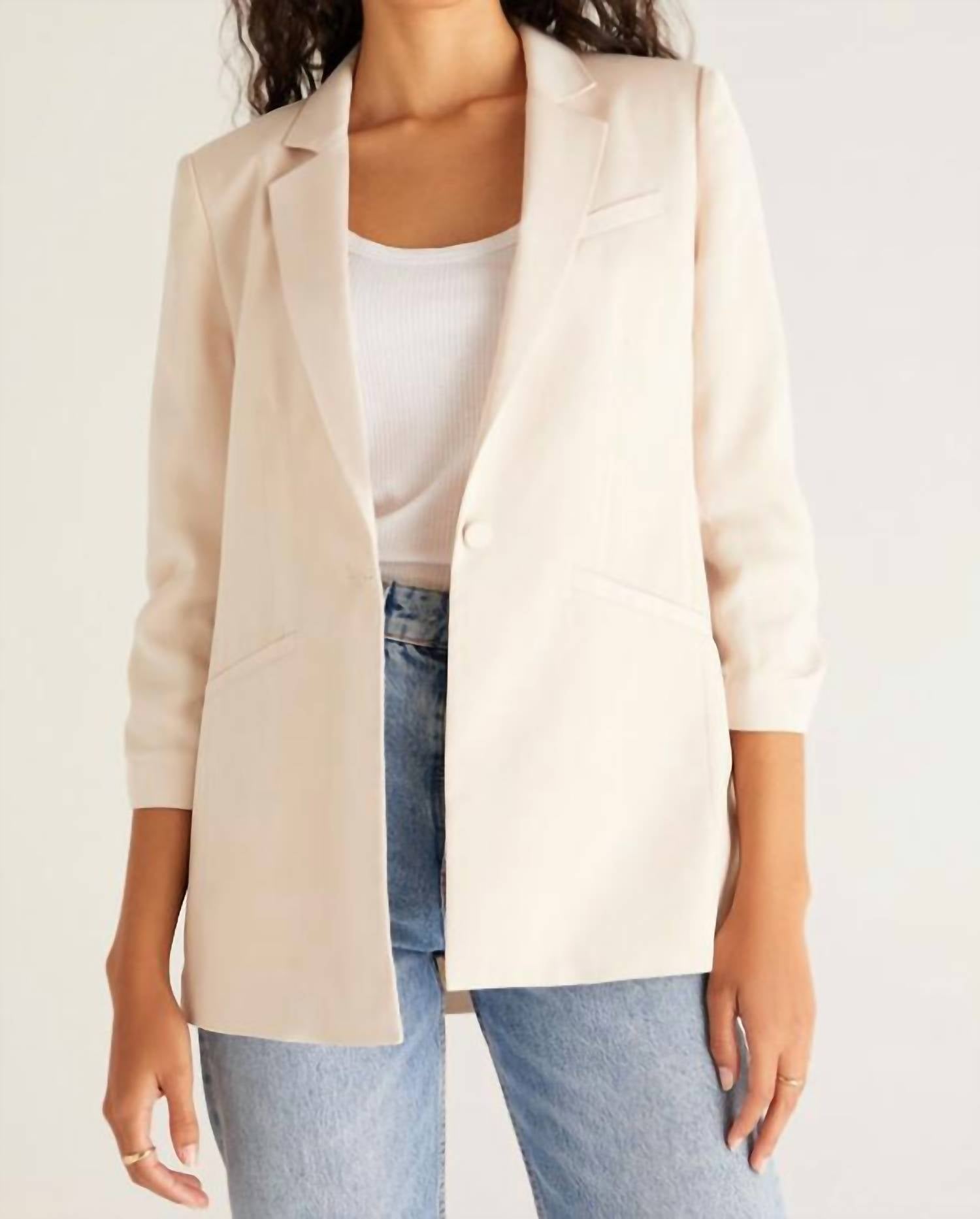 Feito sob medida para a perfeição, este blazer será sua jaqueta favorita por muitos anos. Eleve seu guarda-roupa com o Blazer Cinema da Z Supply, um item essencial para o estilo sofisticado desta estação. Este blazer feminino possui mangas longas e é confeccionado em 100% poliéster com tecido sarja fosco, proporcionando um visual contemporâneo e atemporal. Seu tom ECRU sólido e fecho de botão o tornam perfeito para combinar com jeans e peças essenciais. Desfrute de praticidade extra com bolsos funcionais.