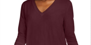 Suéter feminino Maison Jules com decote em V, vinho, tamanho médio