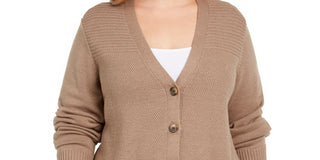Karen Scott Suéter Cardigan Feminino Plus Size em Malha Canelada Marrom -0X