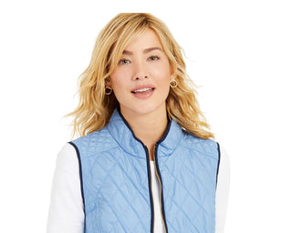 Colete feminino acolchoado com gola alta Charter Club, azul, tamanho pequeno