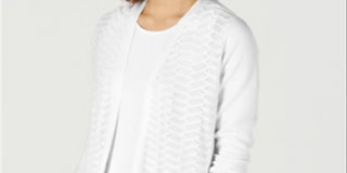 Cardigan texturizado ziguezague feminino Charter Club, branco, tamanho pequeno