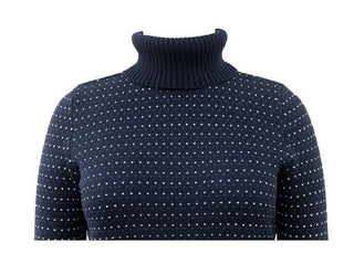 Suéter feminino listrado com gola alta Charter Club, azul, tamanho pequeno