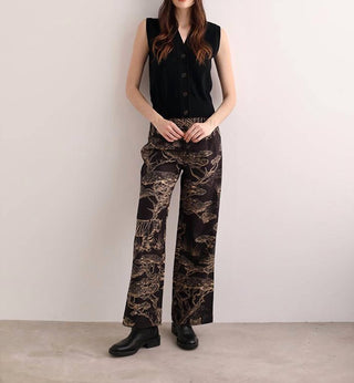 Diva Usa - Tropical Print Button-through Knit Cardigan