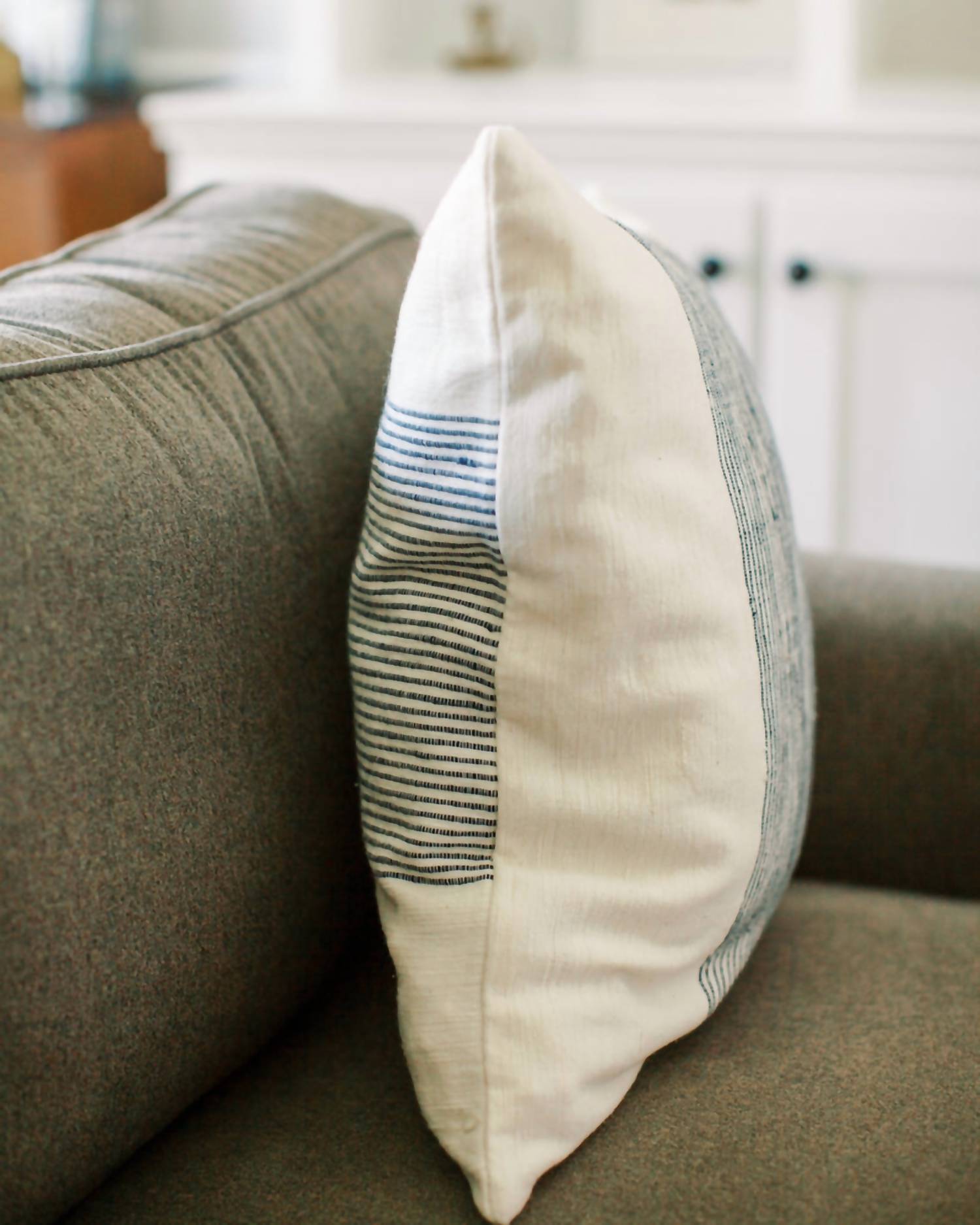 Enhance your interior with the 20" Riviera Cotton Throw Pillow by Creative Women, a beautifully textured accent in navy and white. Crafted from handwoven cotton, this pillow features ribbed accents and measures 20" x 20". It includes a soft inner cotton lining and a convenient zipper closure for easy care. Made with meticulous craftsmanship in Ethiopia, this pillow can be machine washed and dried.
