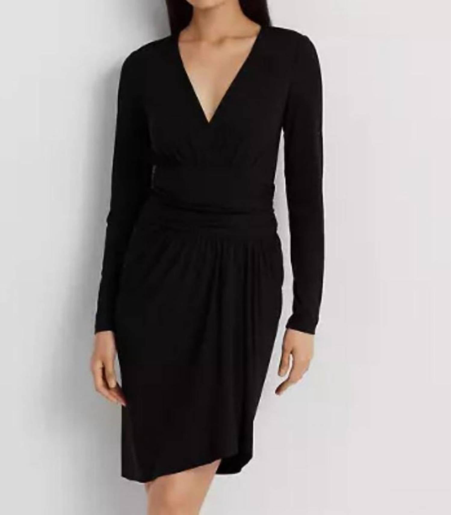 Introducing the Ruched Cocktail Dress by Ralph Lauren, a sophisticated choice for any special occasion. This mini dress features long sleeves and a surplice neckline, with a chic wrap silhouette that highlights a sheathed fit. Crafted from a blend of polyester and elastane, it promises style and comfort, while the concealed center back zipper with a hook-and-eye closure ensures a seamless finish. Care: Hand wash, line dry.