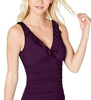 ; Ralph Lauren Beach Club Solid Ruffle Surplice One-Piece | Distingue-se por um decote sobrepeliz com acabamento em babados e embelezado com uma placa dourada gravada com LRL | este maiô é feito com tecnologia slim para um ajuste suave e elegante | Este maiô é projetado com um painel frontal elástico para alisar e embelezar e aro oculto para maior formato e suporte | Decote sobrepeliz com acabamento em babados | Bojos removíveis | Placa de metal gravada com LRL em tom dourado