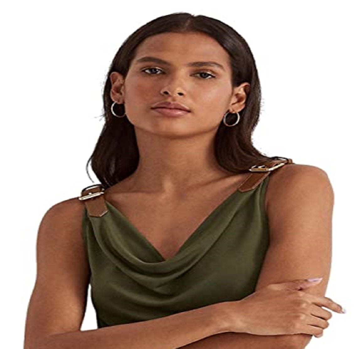Fique chique e sofisticada com a regata Ralph Lauren Jersey com gola careca | Corte slim | Decote careca | Sem mangas com tiras de fivela de couro sintético | A bainha reta foi projetada para ficar no quadril | Estilo pullover | 94% poliéster