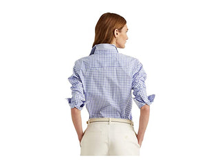 Blusa Ralph Lauren Feminina Xadrez com Mangas Punho e Gola Alta e Botões Azul Tamanho P