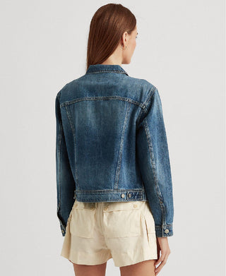 Jaqueta jeans feminina Ralph Lauren com bolsos e botões frontais, tamanho P, azul