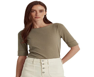 Blusa Ralph Lauren Feminina de Algodão Elástico com Decote Canoa Verde Tamanho X-G