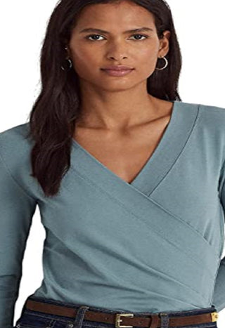 Ralph Lauren Blusa de malha feminina Surplice Azul Tamanho Grande