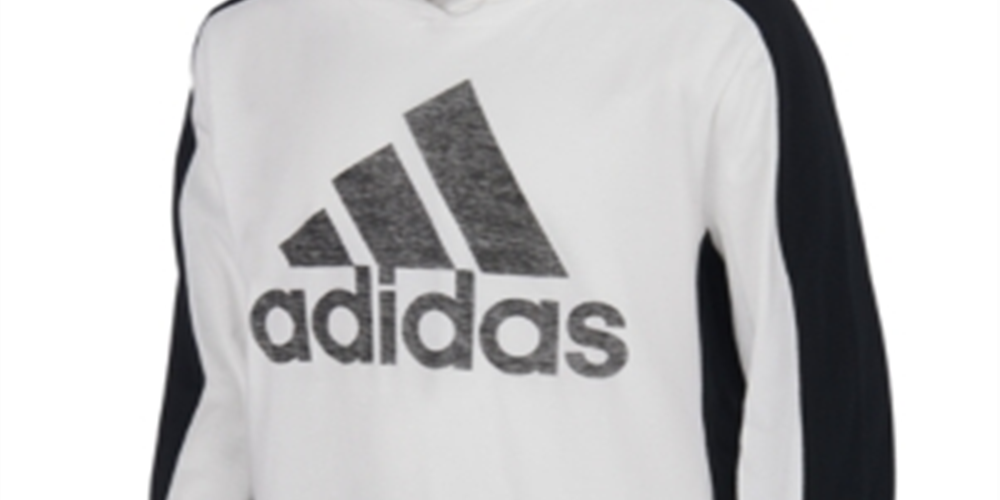 Camiseta com capuz e estampa de logotipo adidas Big Boy's, manga comprida, branca, tamanho médio