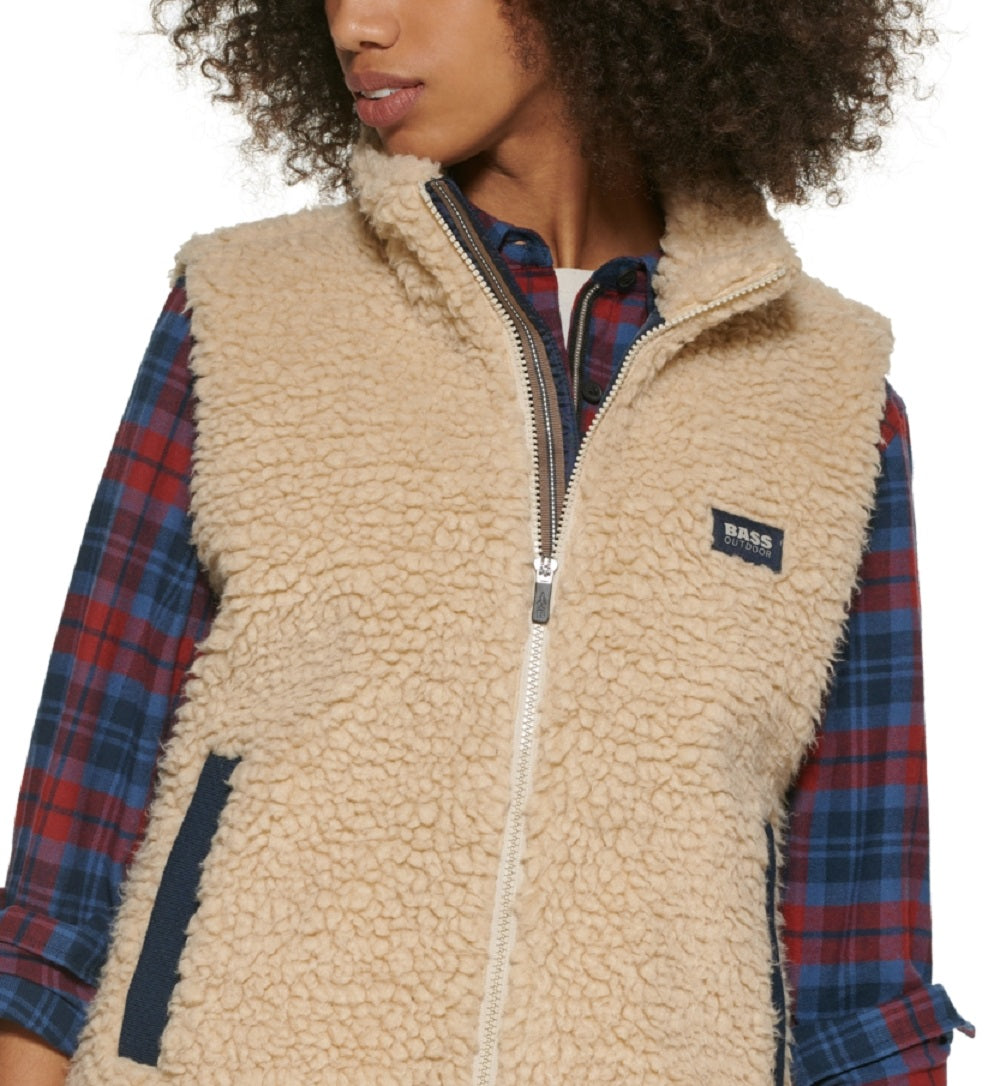 Colete feminino Bass Outdoor Route Hiking Faux Sherpa Marrom Tamanho Médio