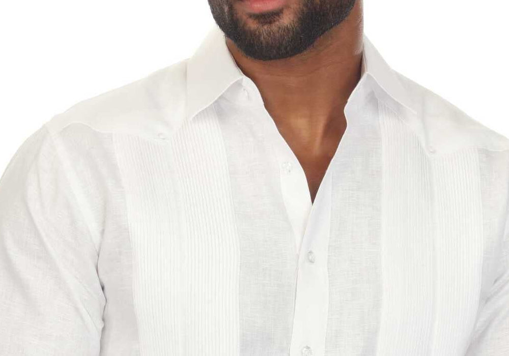 Camisa masculina Mojito 100% linho Guayabera Chacabana manga comprida com detalhes plissados ​​tamanho XXL