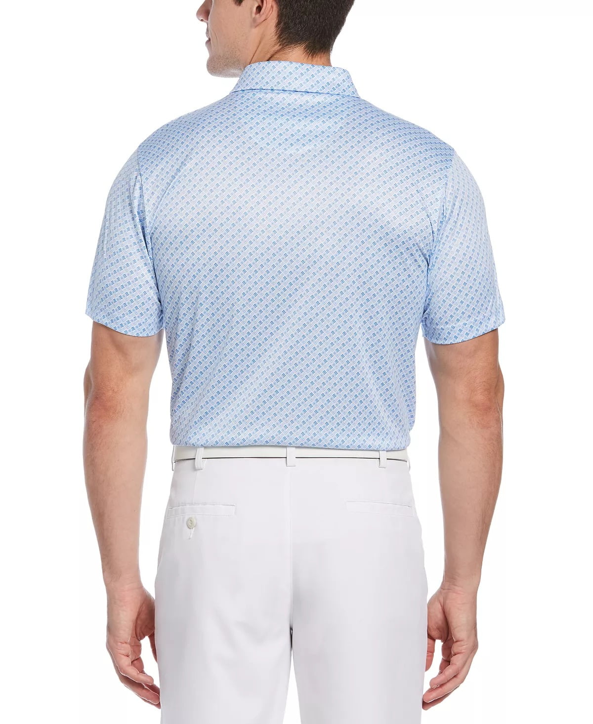 Camisa polo de golfe masculina com estampa geométrica e ajuste atlético PGA Tour, azul, tamanho grande
