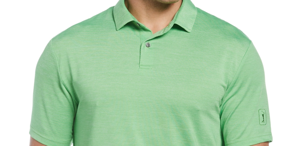 Camisa polo de golfe com textura de tinta espacial masculina PGA Tour, verde, tamanho grande