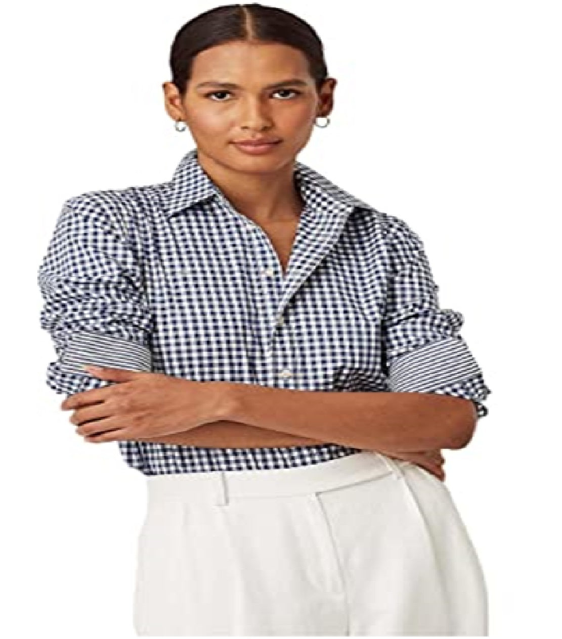 Fique fabulosa com a indispensável camisa Ralph Lauren Easy Care Gingham Cotton com acabamento que não precisa ser passado a ferro | Caimento relaxado | Feito de um tecido adornado com uma charmosa estampa xadrez | Carcela abotoada com botões exclusivos da marca | Pala traseira | Mangas compridas com punhos abotoados | Barra da camisa | 96% algodão